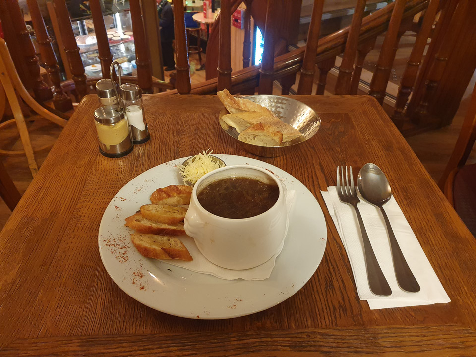 I found a brasserie, called Les Deux Savoie, opposite Gare de Lyon and had some excellent French onion soup there. Friendly waiters and a nicely Parisian ambience.