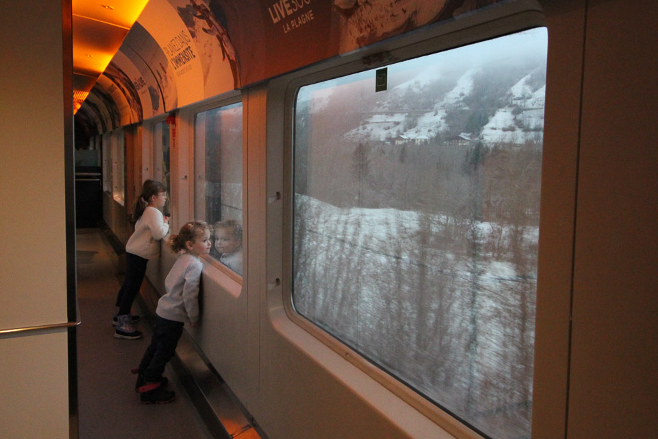 Manon, travelling with her husband and two young girls, told me: “The girls are very excited, it’s their first time to come skiing by train. It’s such a benefit to sleep en route, and it feels like an adventure.” Our conversation was punctuated by excited exclamations from the girls whose faces were pressed against the window: “Mama! Mama! La neige!”