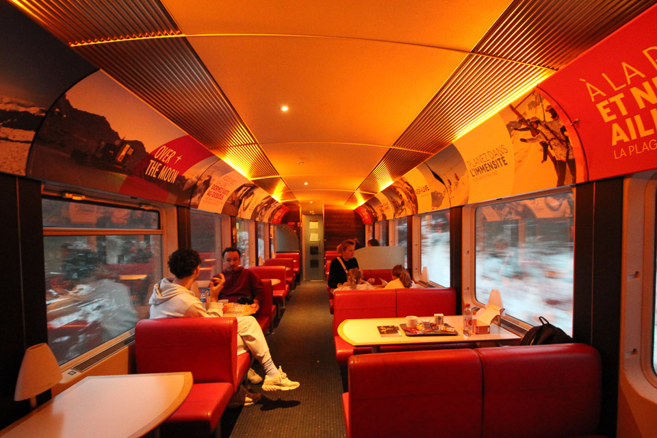 I enjoyed the breakfast pack, including a cappuccino (€12 in total) and sat down, peering out the huge windows as we ploughed through the dim morning light of the Tarentaise valley.